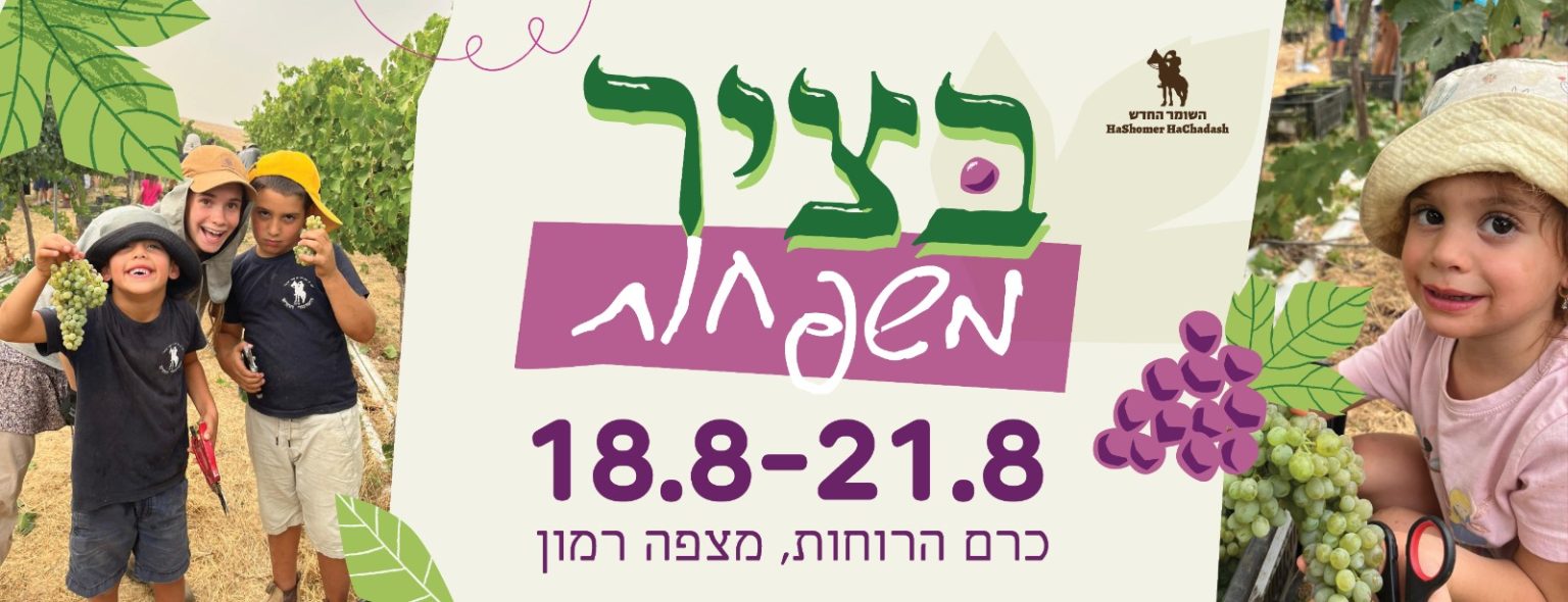 ארגון השומר החדש מזמין אתכם לכרם הרוחות שבמצפה רמון לחווית בציר לכל המשפחהבואו להיות חקלאים ליום אחד, לגעת באדמה, להתחבר לטבע, לישון במתחם קמפינג, סמוך לכרם הענביםולקחת חלק בחוויה חקלאית ערכית ובלתי נשכחת בלב המדבר הקסום!