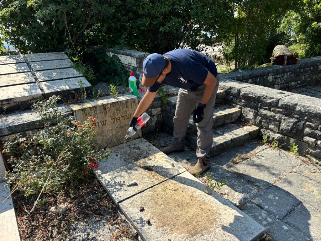 מטפחים את חלקת השומר בבית העלמין של כפר גלעדי