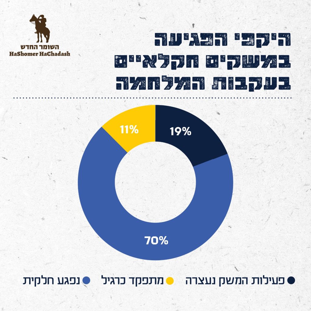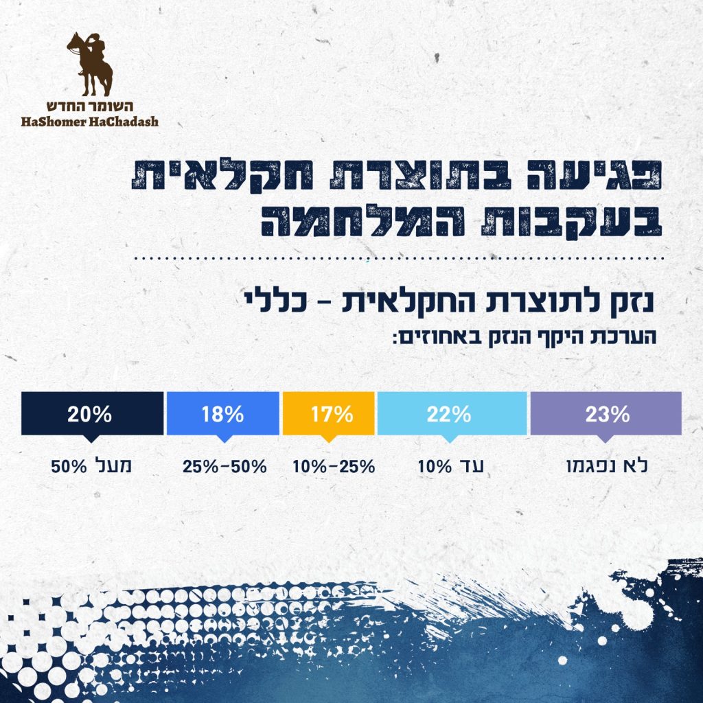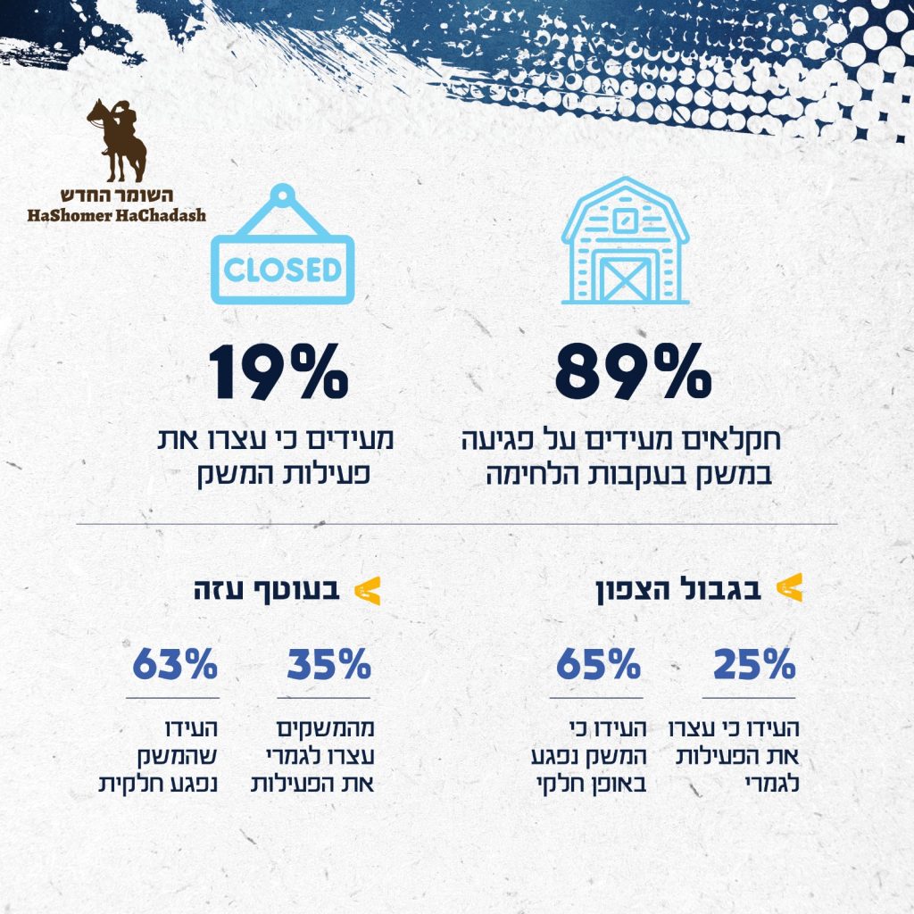 - 89% מהחקלאים מעידים כי המשק שלהם נפגע כתוצאה מהמלחמה
