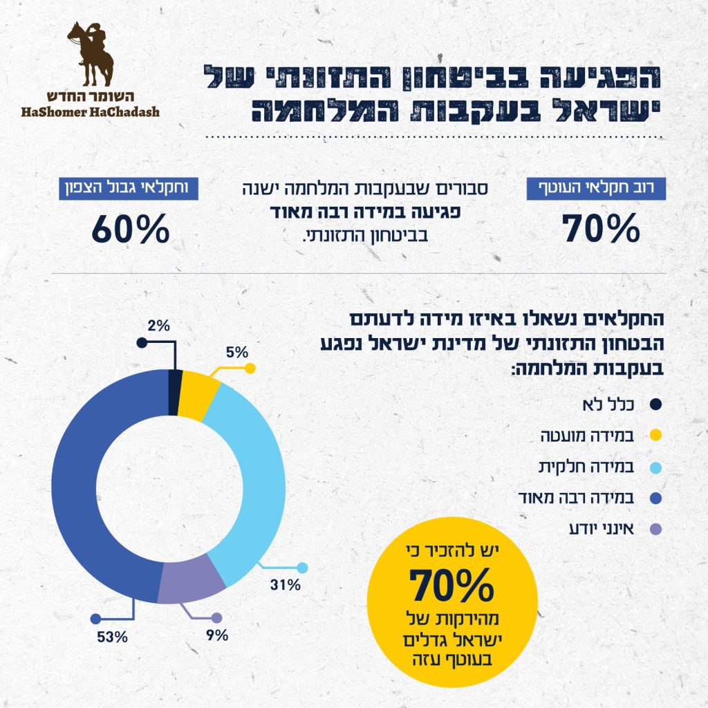 - רוב חקלאי העוטף (70%) וגבול הצפון (60%) סבורים שבעקבות המלחמה ישנה פגיעה במידה רבה מאוד בביטחון התזונתי.