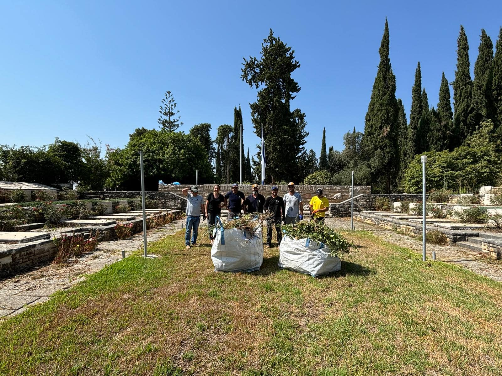 חברי ההנהלה של השומר החדש משפצים ומנקים את חלקת השומר בבית העלמין בקיבוץ כפר גלעדי.